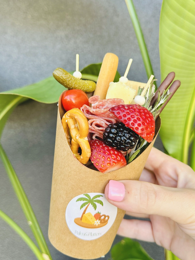 Love Bites are our individual mini cups filled with bite-sized cheese, breadsticks, crackers, olives, fruit, and sweets. Designed to be held in one hand (with a glass of bubbly in the other), they’re the perfect grazing option for weddings and events.